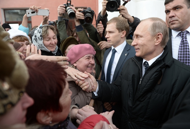 Местные жители встречают Владимира Путина в Старой Руссе // Фото: Алексей Никольский, РИА Новости