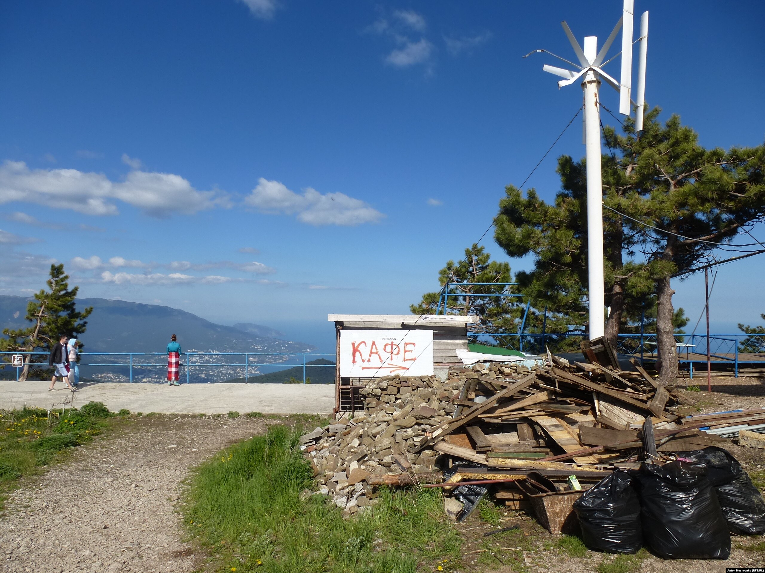 На вершине горы Ай-Петри в аннексированном Россией Крыму начался демонтаж торговых точек. Очистить плато от кафе и магазинчиков потребовал глава республики Сергей Аксенов: крымские власти утверждают, что строения портят вид и вредят заповедной территории. Тем, кто согласится уйти добровольно, власти пообещали выплатить компенсацию и предоставить альтернативное торговое место. Под телекамеры арендаторы соглашались с чиновником и говорили, что покинут Ай-Петри ради "будущего наших деточек". Однако, когда корреспондент Радио Свобода побывал на плато в разгар демонтажных работ, он не заметил особого энтузиазма со стороны собственников сносимых "шалманов".