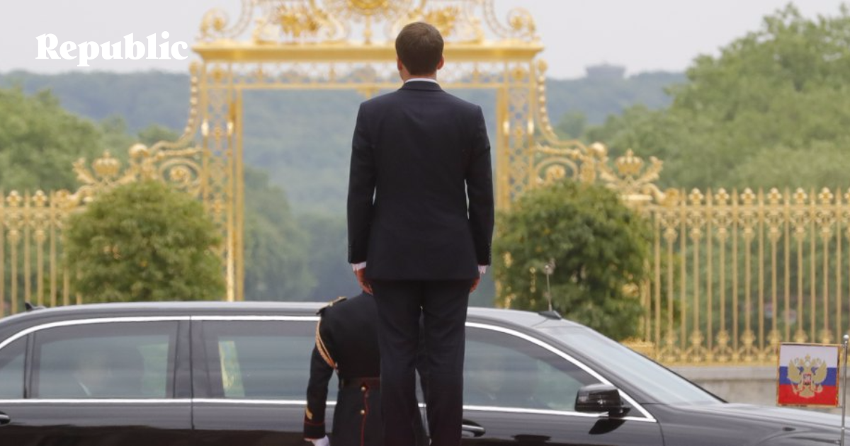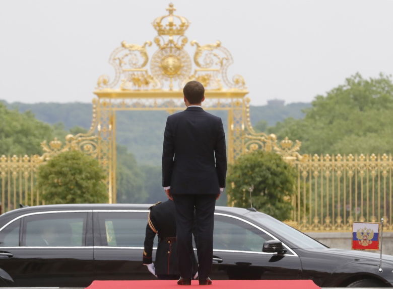 Эммануэль Макрон во время встречи Владимира Путина в Версальском дворце. Фото:Михаил Метцель/ТАСС
