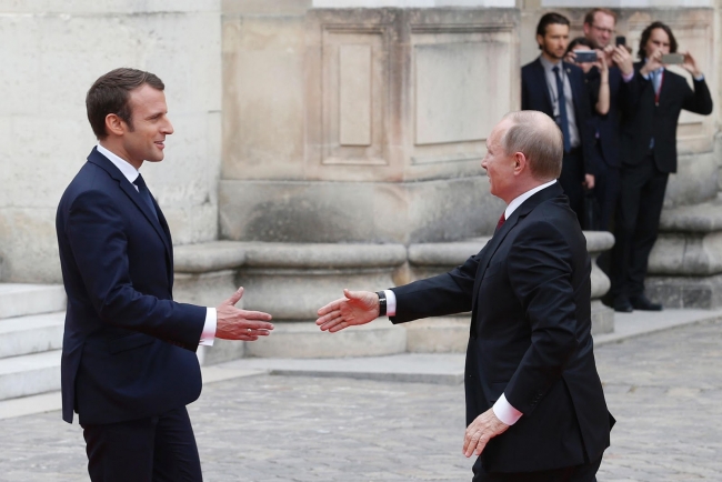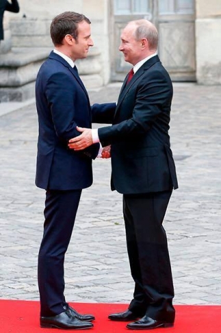 – Да нет, на фотографиях Путина и Макрона. Может, это специально ему так в фотошопе костюм-то испортили? А на самом деле он с иголочки.
