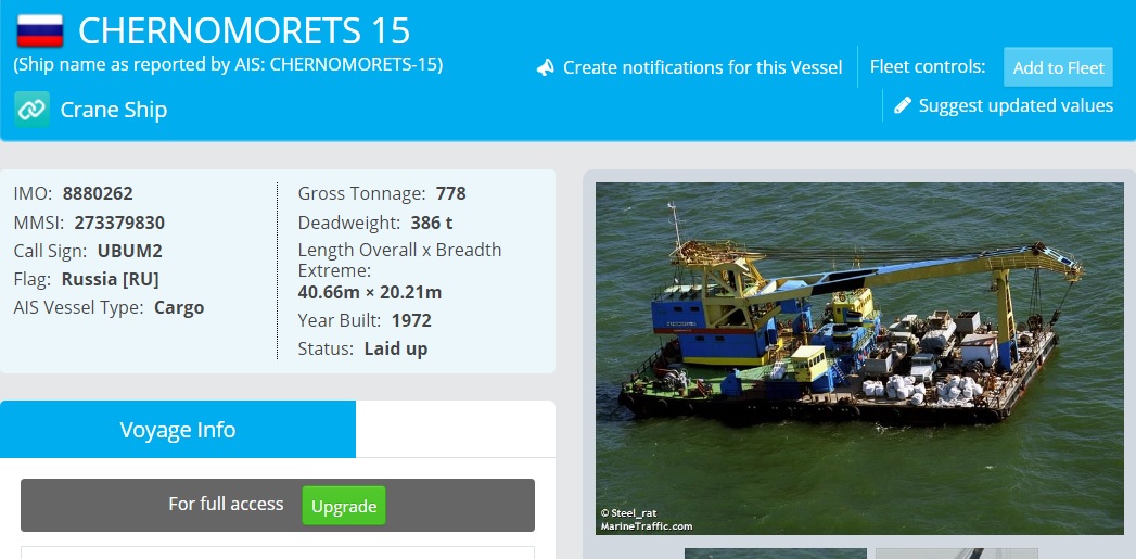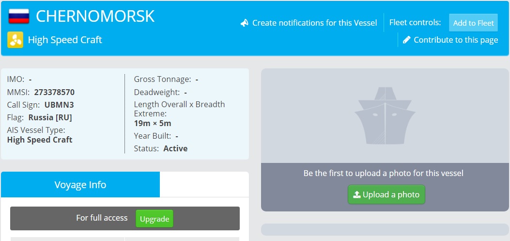 На данный момент эти суда использутся в Крыму в интересах России. Информацию о них мы нашли в международной базе Marine Traffic, которая отслеживает передвижение судов в реальном времени. Эти суда значатся уже под российскими флагами.