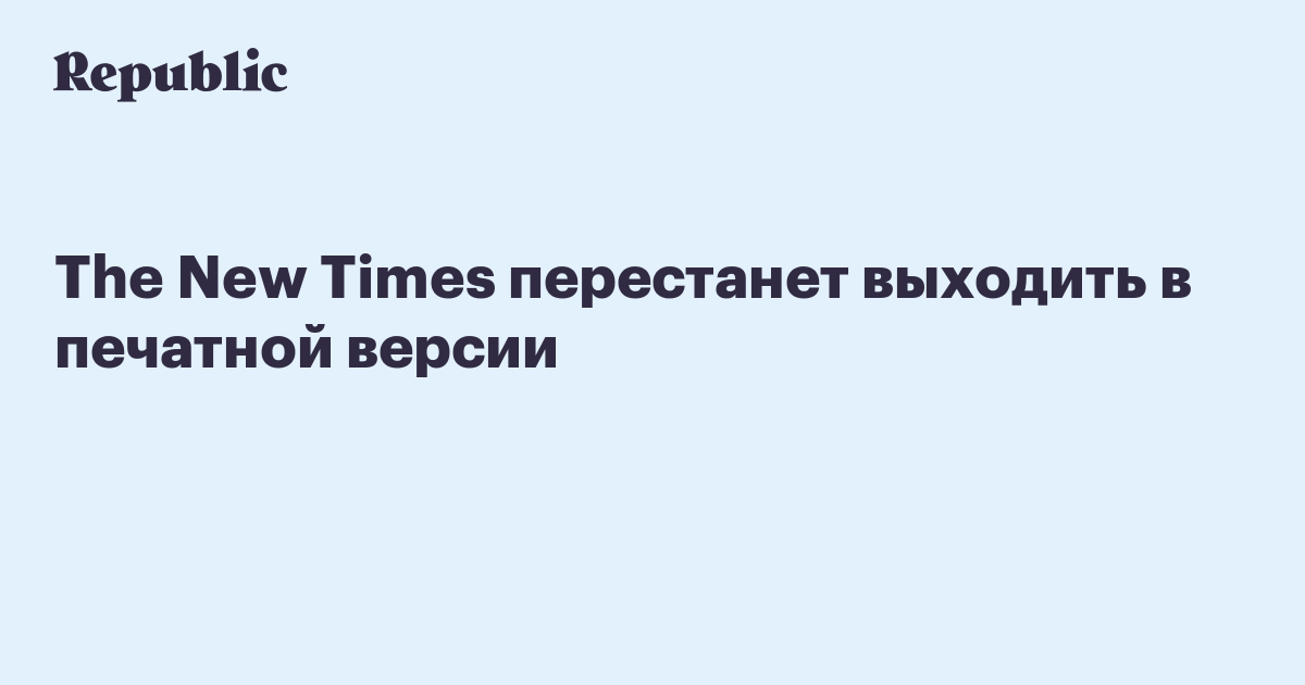 Журнал The New Times перестанет выходить в бумажной версии. Обложку последнего номера в фейсбуке разместила главный редактор издания Евгения Альбац.