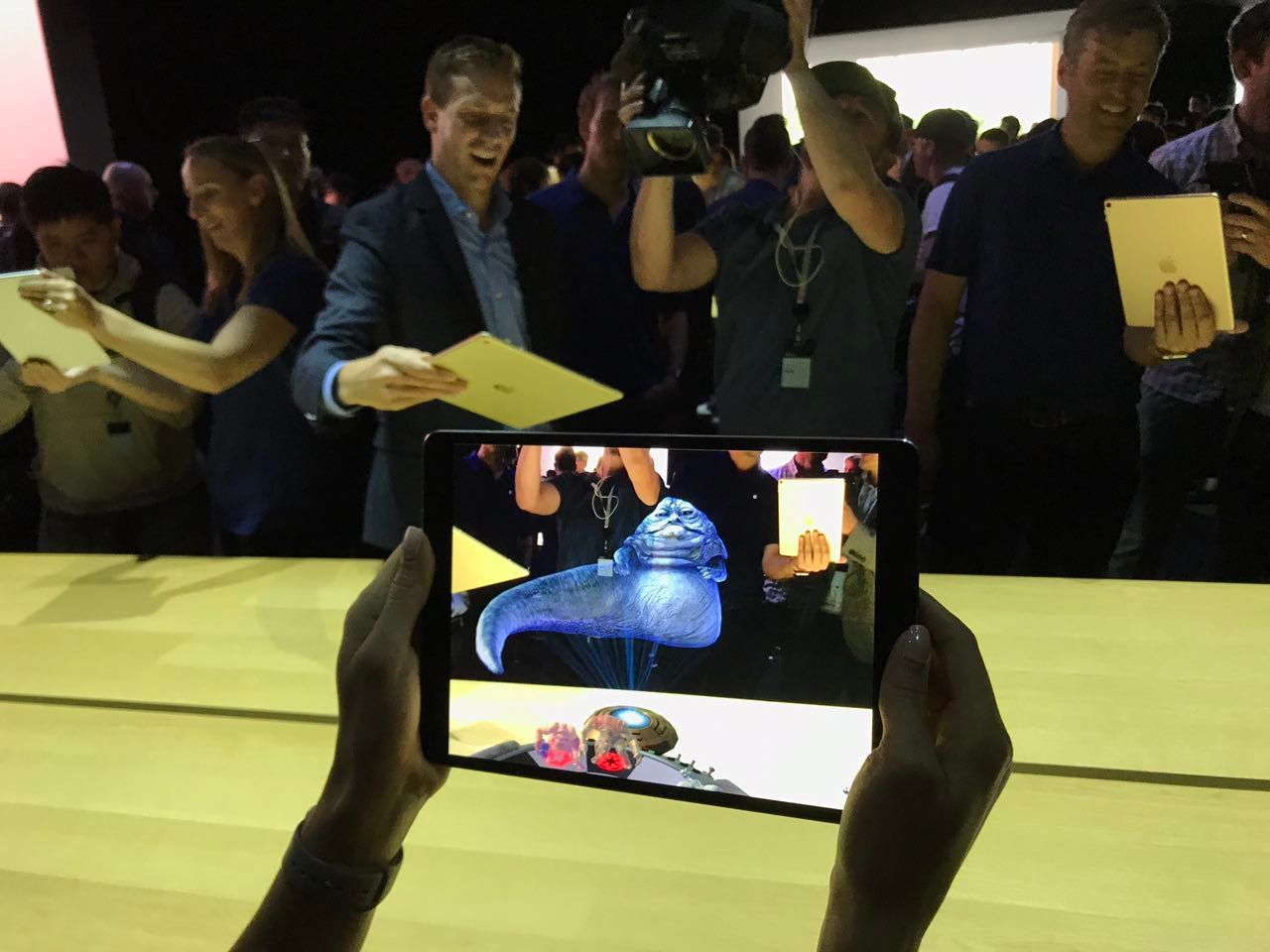 После презентации Apple показала журналистам две простые демо-версии AR-приложений. В одной можно было положить на стол чашку, лампу и вазу. В другой — играть в настольную игру по мотивам «Звездных войн». На экране айпада можно было видеть полупрозрачную модель Джаббы Хатта, висящего на фоне проходивших сзади людей.