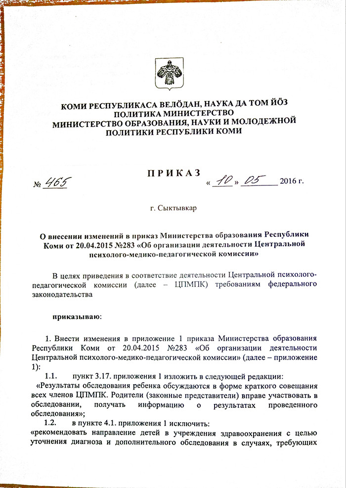 На сайте центра психолого-педагогической реабилитации и коррекции Сыктывкара Юлия Посевкина нашла порядок работы ПМПК в городе. В нем и были прописаны три пункта, которые, по мнению, общественницы нарушают закон.