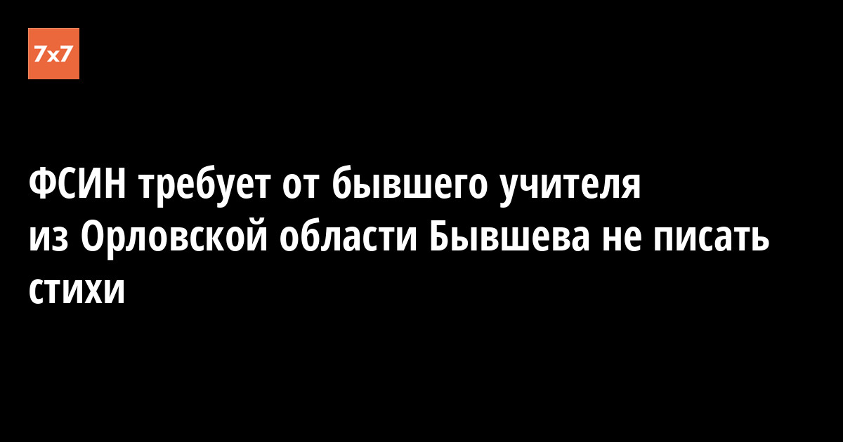 Майор Федеральной службы исполнения наказания (ФСИН) Сергей Семешин, который курирует осужденного за стихи в поддержку Украины Александра Бывшева, потребовал от подопечного не писать стихи. Отказ учителя майор занес в протокол беседы с Бывшевым. Об этом сам поэт и бывший педагог Кромской школы Орловской области 5 июня рассказал в своем Facebook.