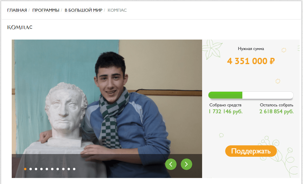В проекте «Компас» каждый год принимают участие около 40 детей из Шаталовского и Сафоновского детских домов Смоленской области. Они проходят профориентацию, готовятся к сдаче экзаменов и поступлению в вузы, получают психологическую поддержку и сопровождение и материальную помощь при выпуске.