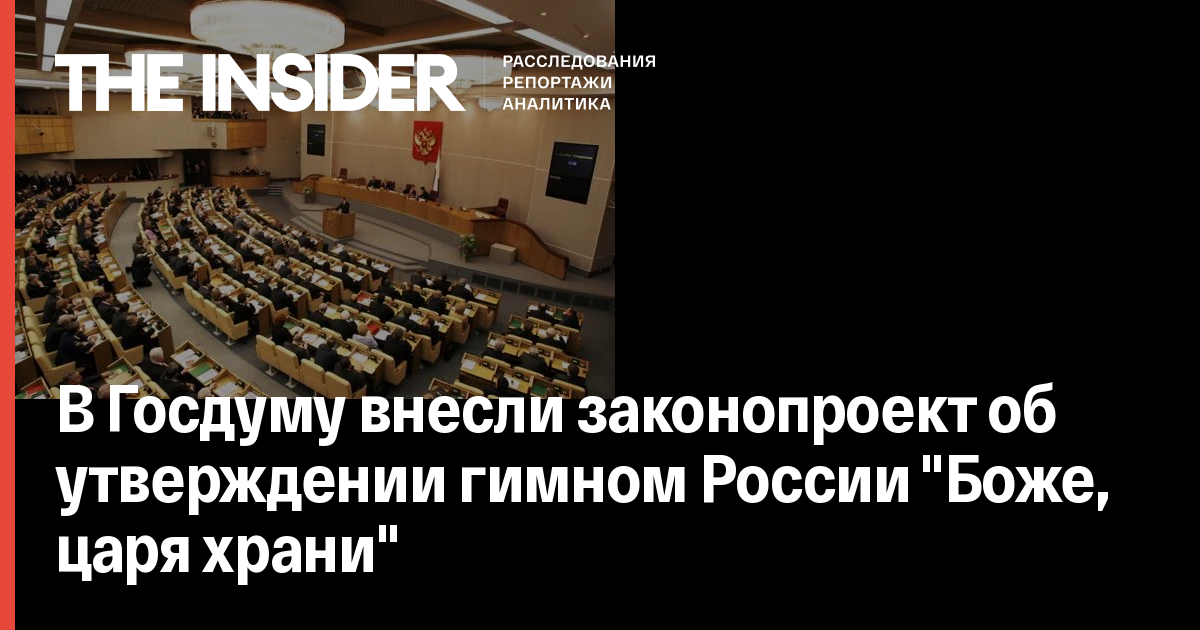 «Настоящим проектом федерального конституционного закона предлагается утвердить новый государственный гимн Российской Федерации «Боже, Царя храни!», — говорится в пояснительной записке к законопроекту.