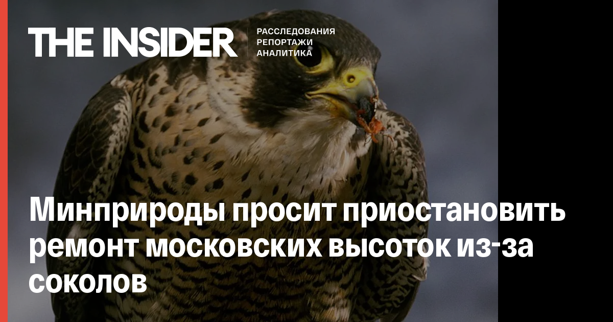 Минприроды просит правительство Москвы приостановить ремонт фасадов высоток в связи с тем, что гнездящиеся там соколы-сапсаны пугаются людей и бросают своих птенцов.