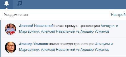 Подписчики Навального и Усманова во «ВКонтакте» получили уведомления о начале шоу об их конфликте. В соцсети назвали это сбоем
