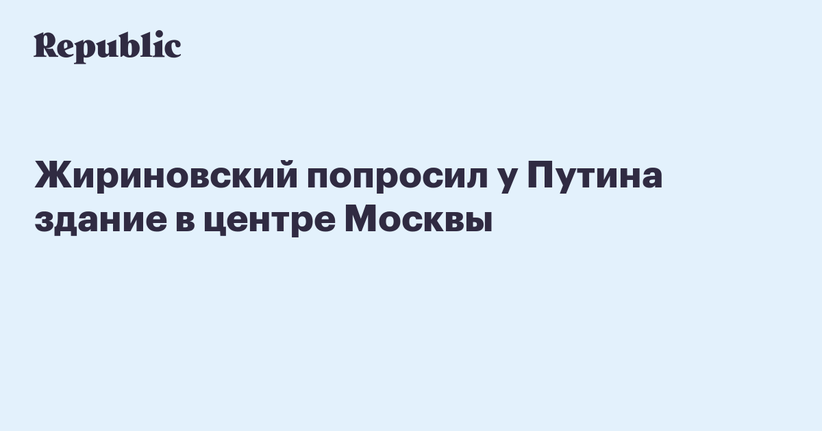 Лидер ЛДПР Владимир Жириновский попросил президента России Владимира Путина выделить ему помещение в центре Москвы для Института мировых цивилизаций. Об этом сообщает РБК со ссылкой на источники, близкие к Кремлю.