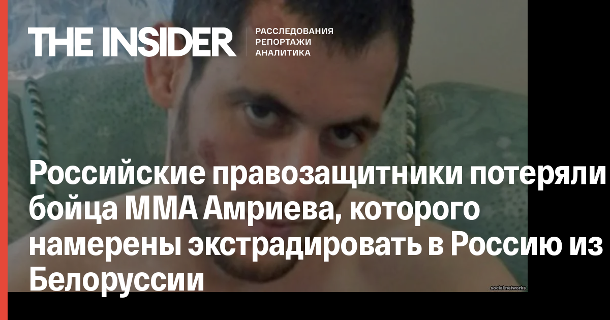 Российские правозащитники не располагают информацией о месте нахождения российского бойца ММА Мурада Амриева, которого белорусские власти намерены экстрадировать в Россиию. Об этом The Insider рассказал адвокат Амриева Петр Заиков.