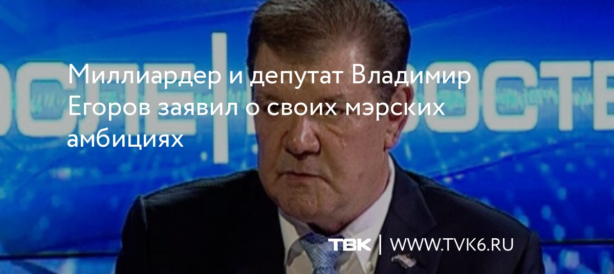 Миллиардер и депутат Владимир Егоров заявил о своих мэрских амбициях