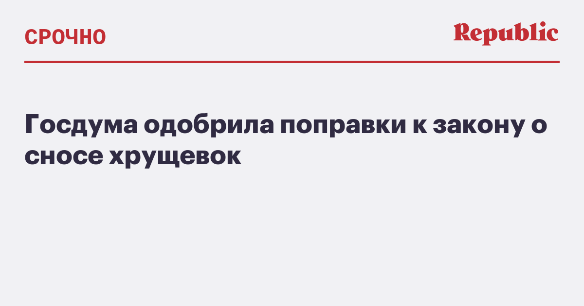 Госдума во втором чтении одобрила законопроект о сносе московских хрущевок. Трансляция заседания велась на сайте нижней палаты парламента. За него проголосовали 406 депутатов, двое – против, еще двое воздержались.