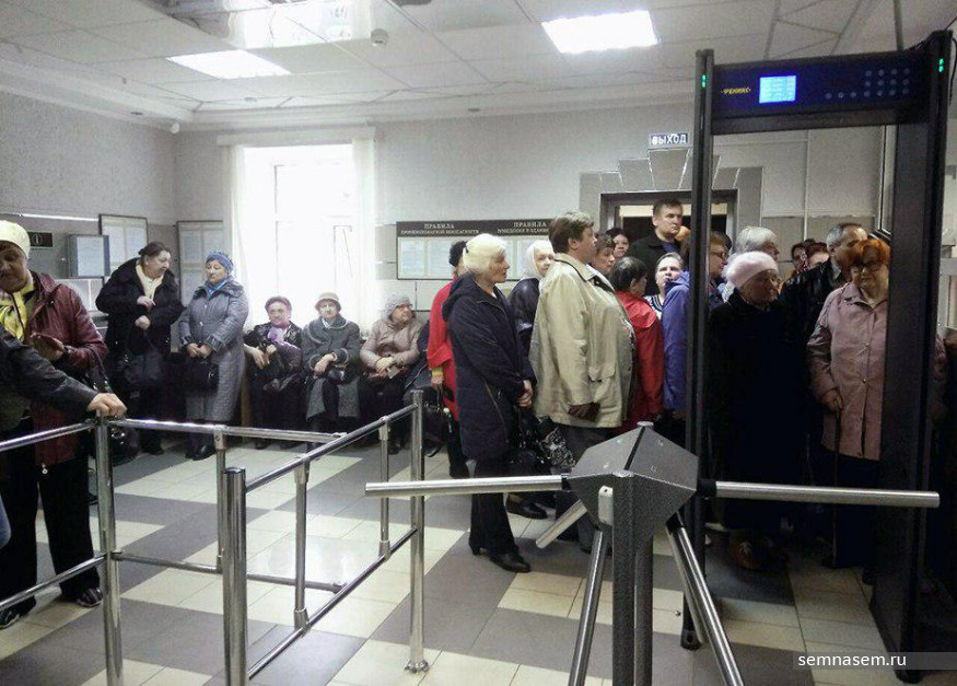 С утра вокруг здания Интинского городского суда встали несколько полицейских машин. Заседание было назначено на 9:30. Примерно в восемь утра начали приходить люди, в основном пенсионеры, — говорят, что по своей воле, чтобы морально поддержать бывшего мэра города. Они занимали очередь и ждали перед рамками металлоискателей. В зал заседания сразу пропустили только журналистов и жену экс-мэра Наталью Смирнову.