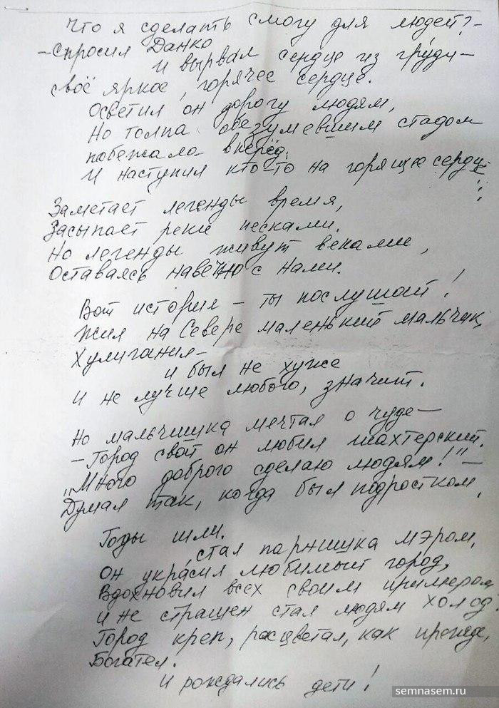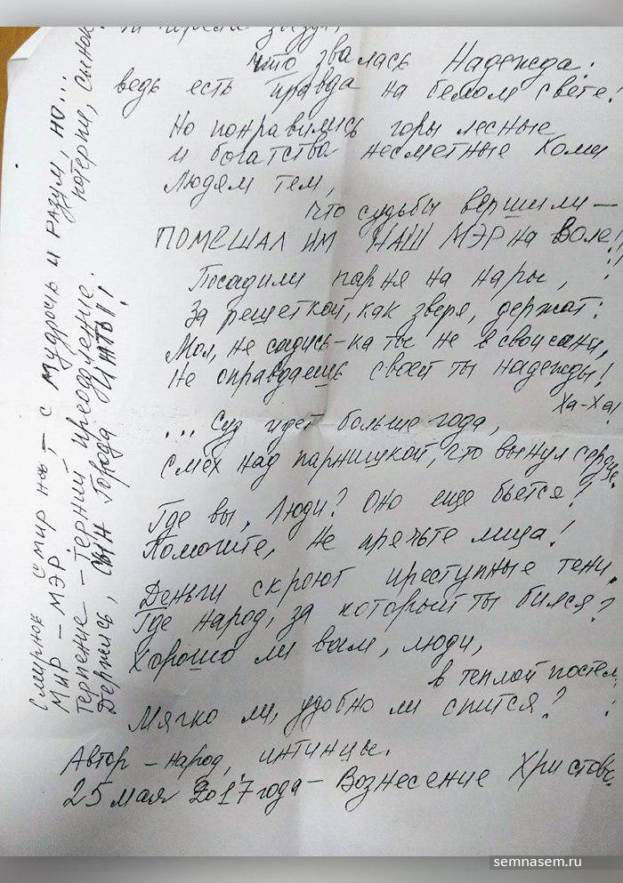 Одна из пожилых женщин передала стихотворение в честь экс-мэра, автором которого, по ее словам, являются интинцы.