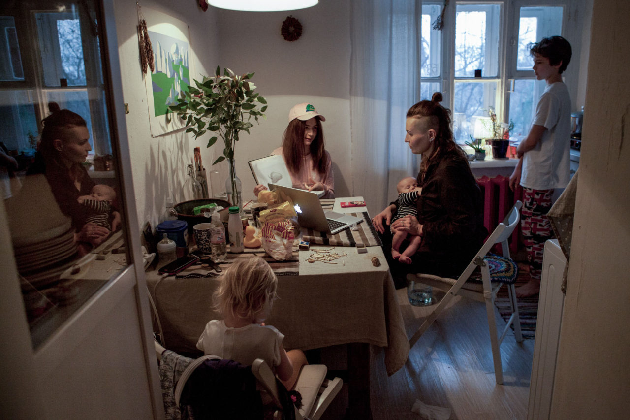 «Как же мы возьмем вас на работу, у вас же маленький ребенок, вы будете постоянно на больничном!» Мам-одиночек вообще не любят официально оформлять — их ведь потом не уволишь. А куда пойти работать с двумя, тремя, четырьмя детьми? Многие мамы находят выход из ситуации в удаленной работе, фрилансе, а некоторые берут с собой детей на работу. Некоторые с рождением ребенка открывают для себя новые профессии. Фотопроект Юлии Скоробогатовой посвящен мамам, для которых понятия «декрет» не существует.