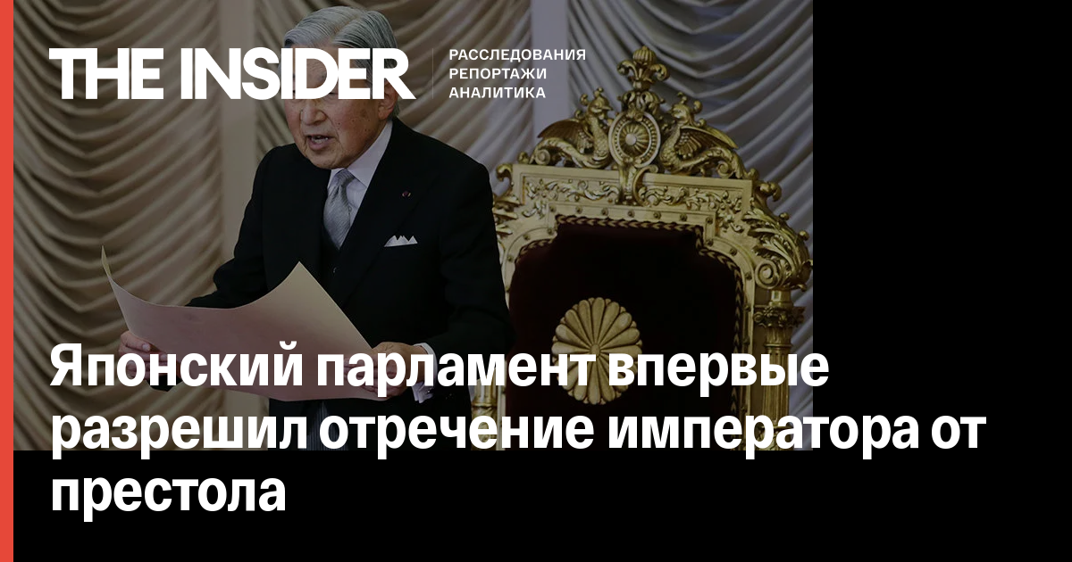 Верхняя палата парламента Японии приняла законопроект, согласно которому действующий 83-летний император Акихито может прижизненно отречься от престола. Об этом сообщает CNN.