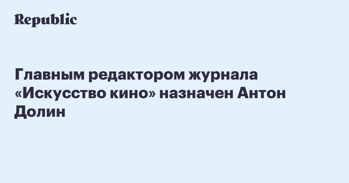 Кинокритик Антон Долин назначен главным редактором журнала «Искусство кино». Как передает корреспондент телеканала «Дождь», об этом объявили на фестивале «Кинотавр».
