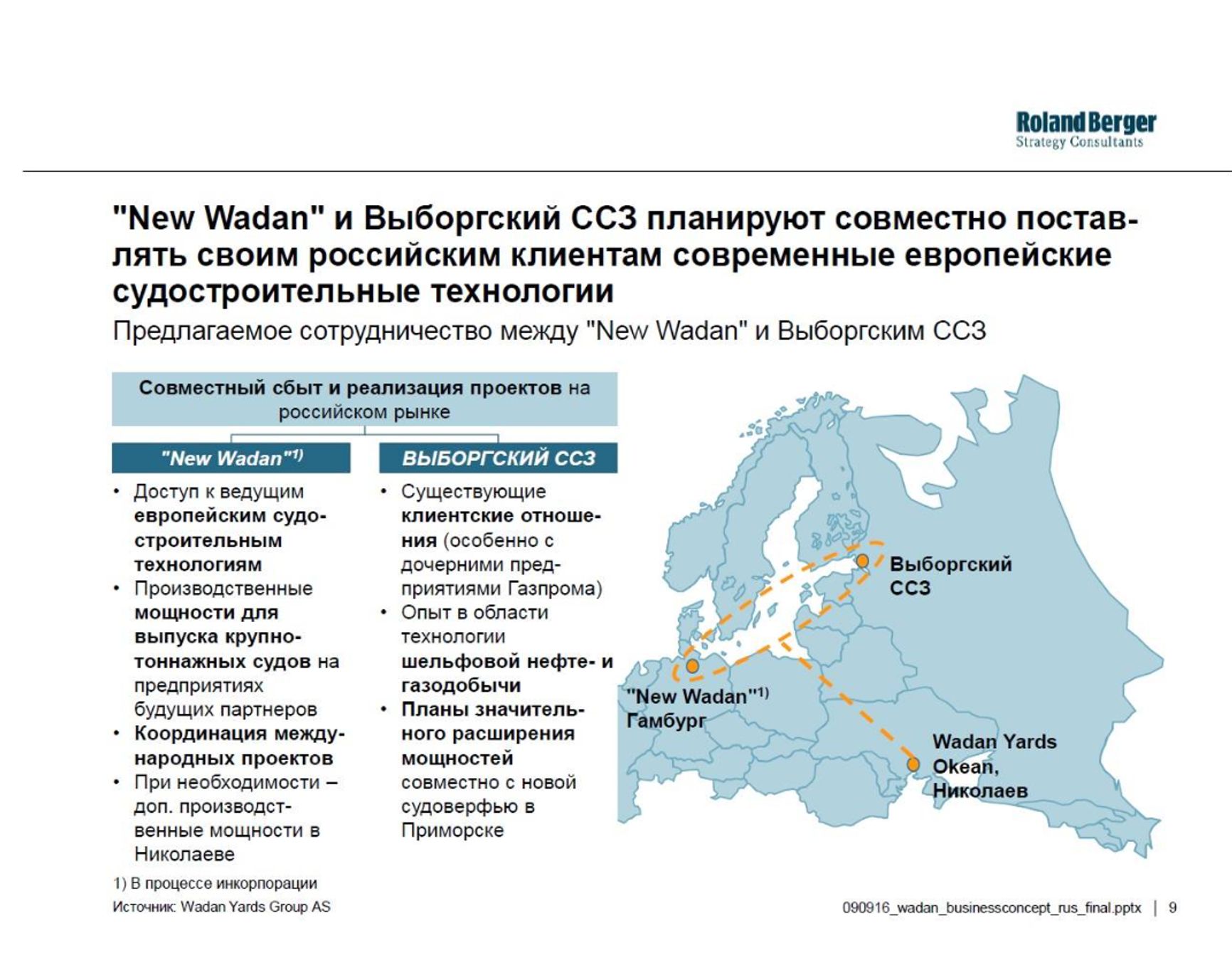 28 июля 2008 года были окончательно завершены платежи по сделке, продолжавшиеся с марта. Из 249 млн евро, которые получили норвежцы, 50 млн предоставил ставший председателем совета директоров верфи Андрей Бурлаков; еще 200 млн, как он уверял, являются банковскими кредитами, но при этом отказывался назвать банки, ссылаясь на «коммерческую тайну». Верфи были с помпой переименованы в Wadan Yards. Выступая перед рабочими, Бурлаков излучал оптимизм кремлевского мечтателя: он пообещал не только сохранить 2400 рабочих мест, но и приумножить их, обеспечив верфи заказами на 2,5 млрд евро из России. «Мы боимся, что работников окажется слишком мало и придется нанимать новых», — заявлял Бурлаков. Однако уже через год верфи обанкротятся, а еще через два года будет убит сам Бурлаков.