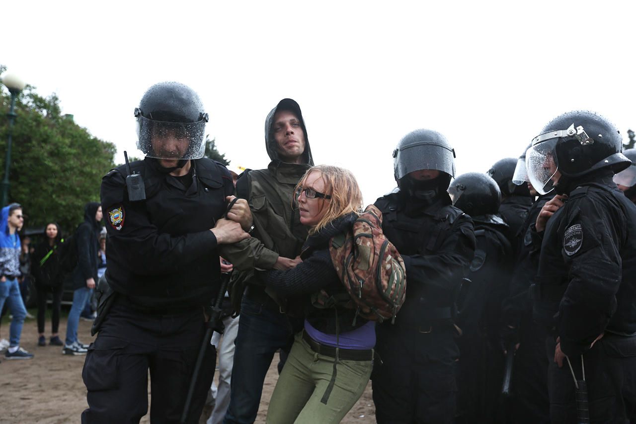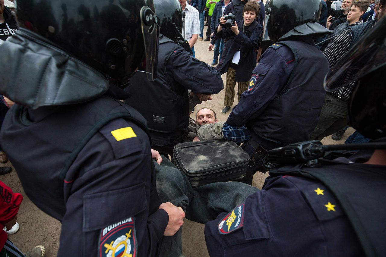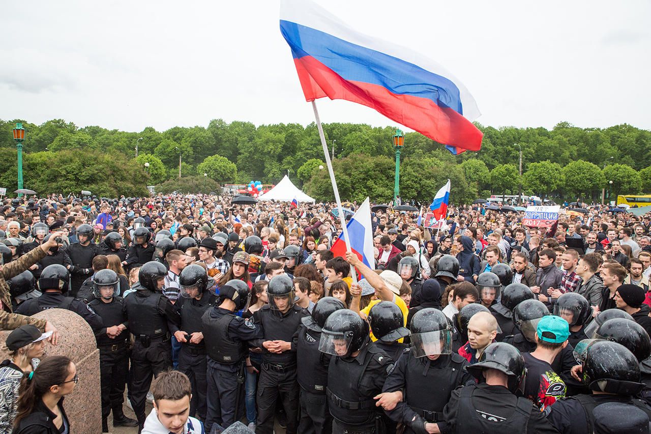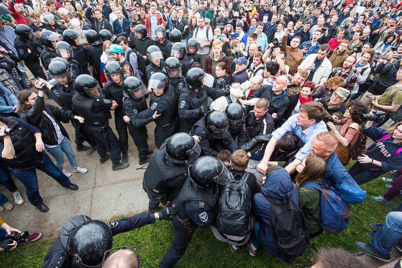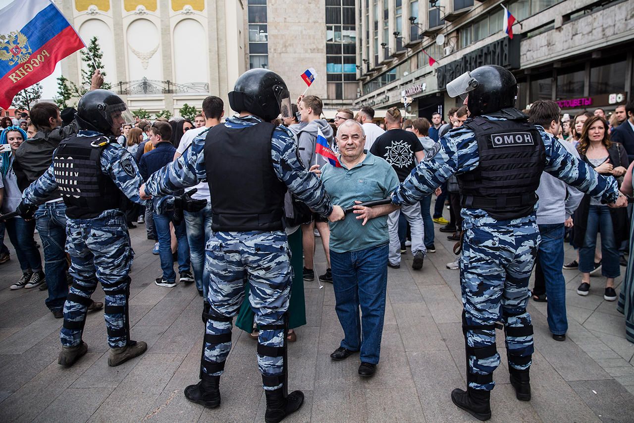 Police detained more than 1,000 demonstrators at protests in Russia’s two biggest cities on Monday, June 12. On Tverskaya Street in Moscow and at Marsovo Polye Park in St. Petersburg, officers say they grabbed anyone who seemed to have come to participate in an unsanctioned political demonstration against corruption. Because Monday was also Russia Day, a national holiday celebrating the country’s state sovereignty, police had to detain many of the activists at outdoor public events literally as Russia's national anthem played over loudspeakers.