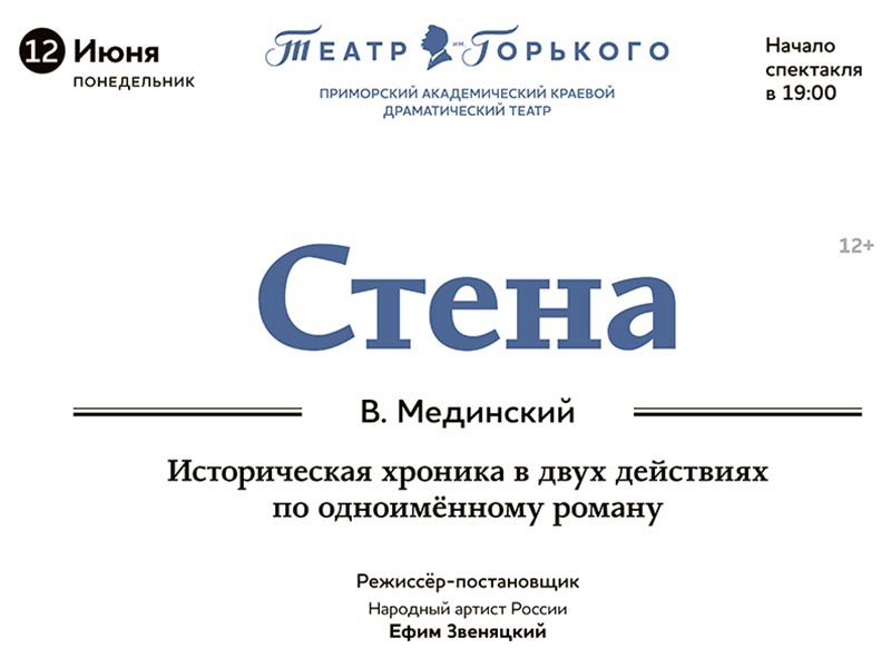 Напомним, что роман "Стена", опубликованный в 2012 году, посвящен обороне Смоленска и событиям русско-польской войны начала XVII века. Книга является первым романом министра культуры. Премьера спектакля по этому роману, поставленного художественным руководителем Приморского драматического театра, народным артистом РФ Ефимом Звеняцким, состоялась во Владивостоке в сентябре 2016 года.
