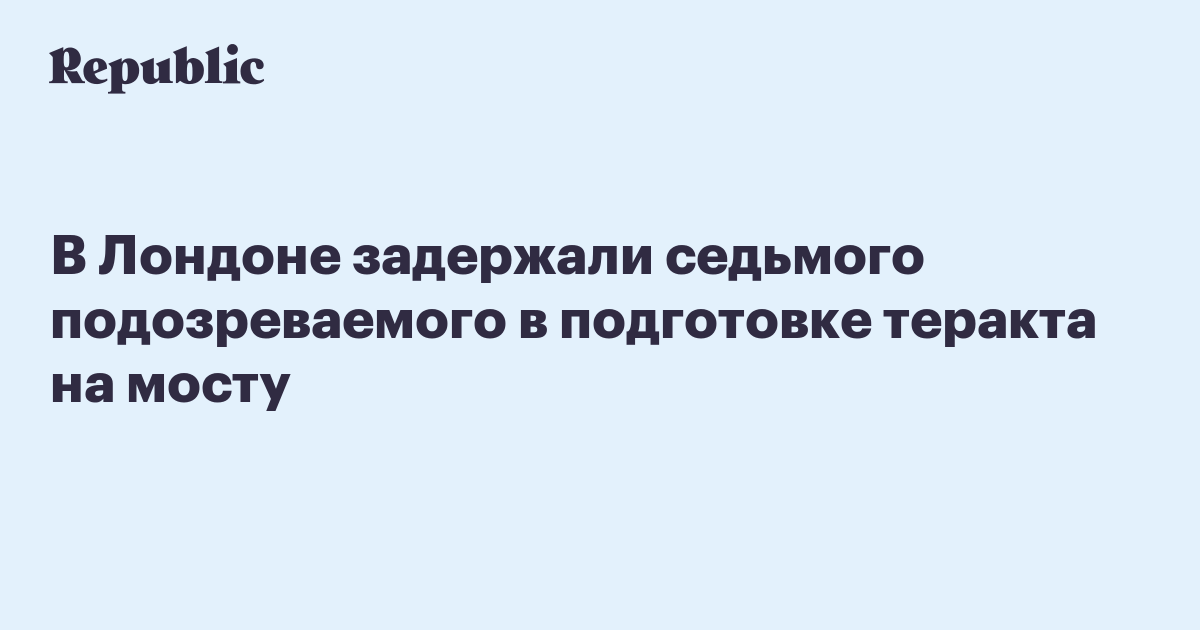 Полиция заявила о задержании седьмого подозреваемого по делу о теракте на Лондонском мосту. Об этом сообщается в пресс-службе Скотленд-Ярда.