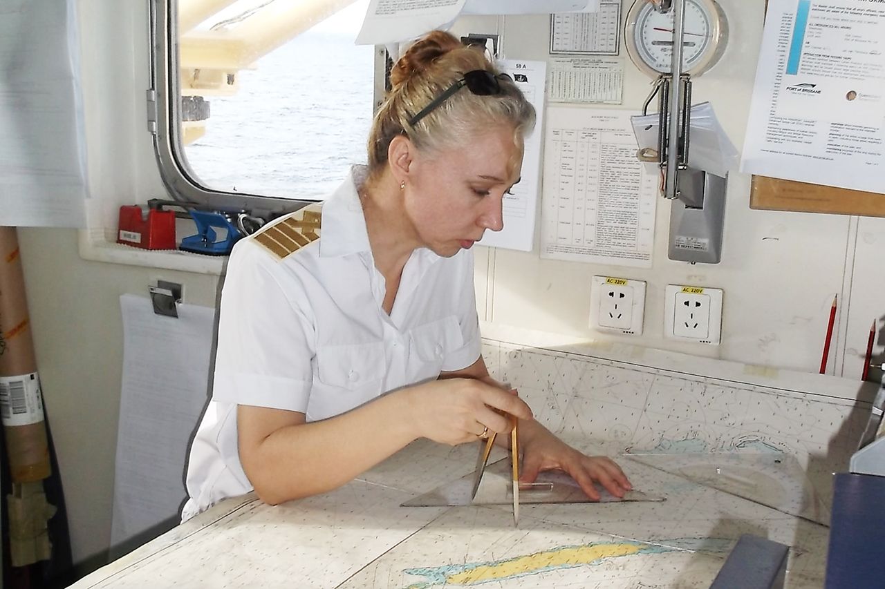 Помню, как шла по Невскому и чуть не плакала, думала, все пропало. И тут мне позвонили из «Совкомфлота». Меня определили на Sibur Tobol — судно с водоизмещением 22 765 тонн, которое курсирует между Усть-Лугой под Петербургом, Швецией, Францией и Англией. Я стала там первой девушкой-штурманом, получив контракт на четыре месяца. Это много — считается, что за это время в море штурманский состав успевает устать. Поэтому стандартный график — четыре через четыре, поровну в море и на берегу.