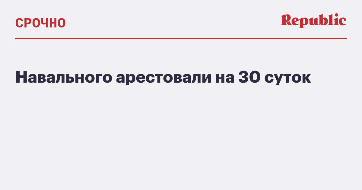 Алексея Навального арестовали на 30 суток из-за несогласованной акции на Тверской улице. Об этом в твиттере написала пресс-секретарь политика Кира Ярмыш.