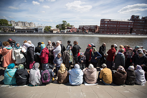 4, 5, 6, 7. Россия. Москва. 22 мая 2017. Верующие в очереди к храму Христа Спасителя, где находится ковчег с частицей мощей святителя Николая Чудотворца. Мощи Николая Чудотворца впервые за 930 лет покинули итальянский город Бари и будут находиться в России до 28 июля. Станислав Красильников/ТАСС