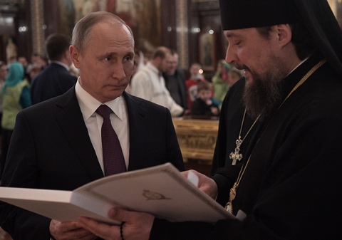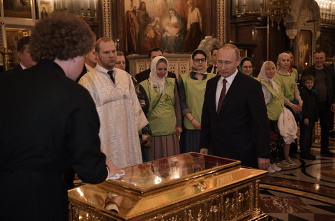 11. Россия. Москва. 24 мая 2017. Президент России Владимир Путин (справа на первом плане) во время поклонения мощам святителя Николая Чудотворца в храме Христа Спасителя. Алексей Никольский/пресс-служба президента РФ/ТАСС