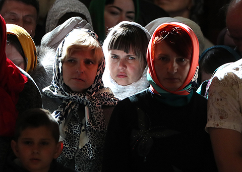 10. Россия. Москва. 22 мая 2017. Волонтеры организации "Сорок сороков" во время литургии в храме Христа Спасителя в день празднования перенесения мощей Николая Чудотворца из Мир Ликийских в Бар. Мощи святителя Николая Чудотворца впервые за 930 лет покинули итальянский город Бари и будут находиться в России до 28 июля. Валерий Шарифулин/ТАСС