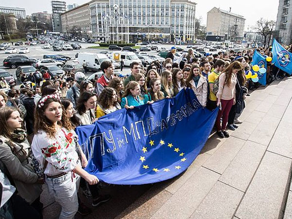 Акция молодежи на площади независимости. 2016 год / YouTube.comЧто касается массовых уличных акций, о которых, по данным газеты, говорят в докладе, то на Украине люди выходят на улицы, но это не становится причиной такого возбуждения, как, допустим, было с акциями 12 июня в Москве. Как мы видим даже по истории двух Майданов, какие-то изменения в направлении развития государства в результате уличных акций случаются только тогда, когда закрыта возможности реализовывать это в рамках законных процедур. Это, думаю, более или менее понятно. А сейчас на Украине те, кто имеет претензии к действующего президенту или еще кому-то из находящихся у власти, попытаются реализовать эти претензии на выборах.