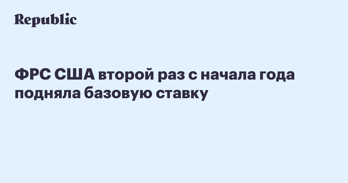Федеральная резервная система (ФРС) США повысила базовую ставку с 0,75–1% до 1–1,25%, сообщается в пресс-релизе регулятора.