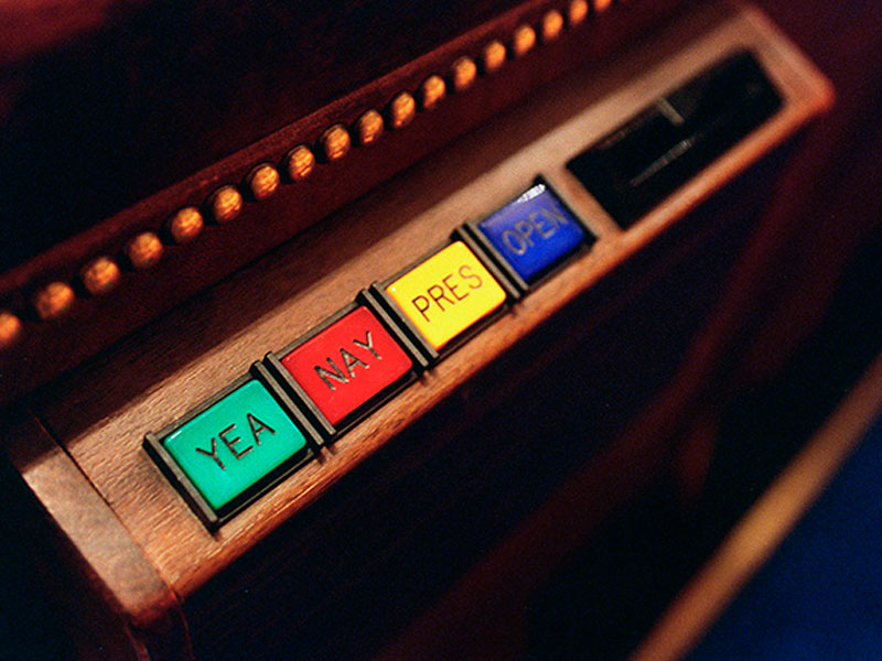 Система голосования в Конгрессе США / wikipedia.org Politico пишет, что проект сената – это самое серьезное потенциальное ограничение, которое республиканцы в этом году пытаются наложить на Белый дом. Республиканцы –потому что в конгрессе их сейчас большинство. Однако в ходе переговоров, предшествовавших голосованию, между республиканцами и демократами в сенате наблюдалось редкостная солидарность, какой не было, скажем, в то время, когда обсуждалась отмена обамовской страховой программы для бедных. Тогда согласия не было даже среди самих республиканцев.