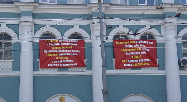 Сразу двум событиям была посвящена акция орловской общественной организации "Ассоциация предпринимателей малого и среднего бизнеса": общероссийскому антикоррупционному митингу, который состоялся в Орле 12 июня т.г. и начавшейся прямой линии царя-батюшки Путина, свет, Владимира Владимировича.
