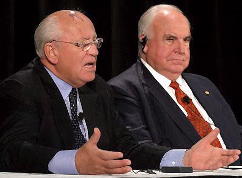 Отличие крупного политика от просто политика в том, что первый всегда видит цель. В начале 1990 года Коль уверял французского президента Франсуа Миттерана, что до воссоединения двух Германий еще далеко. И он не лукавил. Просто время тогда было безумно спрессовано, и на то, на что могли уйти годы, — уходили дни. «К 3 октября 1990 года, когда мы достигли этой цели, со дня падения Стены не прошло и года. С тех пор для меня две даты — 9 ноября 1989 года (день, когда пала Берлинская cтена. — NT) и 3 октября 1990 года — счастливейшие дни моей жизни», — сказал Коль одному из авторов этих строк в далеком 2000 году. В невероятно короткий срок, менее чем за 11 месяцев, немецкое единство стало реальностью. Коль не хотел пугать французов призраком новой «великой Германии»: Париж и так был напуган и сопротивлялся объединению до последнего. Газеты потом еще долгие годы цитировали Миттерана, который боялся, что, объединившись, «немцы придумают себе нового Гитлера». Но боялся не только Миттеран — боялась и Маргарет Тэтчер. Боялись Рим и Гаага. И даже Вашингтон охватили муки сомнения — не отдалится ли объединенная ФРГ от западного союза, не приблизится ли к Москве. Но Коль сумел добиться поддержки президента Буша-старшего. А советский лидер Михаил Горбачев не просто протянул Колю руку — в знак поддержки, в объединении Германии он сыграл роль, столь же выдающуюся, что и сам немецкий канцлер. При этом политические риски, которые брал на себя генсек ЦК КПСС, в спину которому все еще дышала партсовноменклатура, перевешивали риски Коля. Не зря бывший правящий бургомистр Берлина Эберхард Дипген когда-то сказал одному из авторов этих строк, что без смены ориентиров в Москве немецкое единство было бы невозможно. И решающую роль в этом сыграл Горбачев. Именно поэтому он — почетный гражданин Берлина, и ему в городе поставлен памятник (рядом — памятники Бушу и Колю).