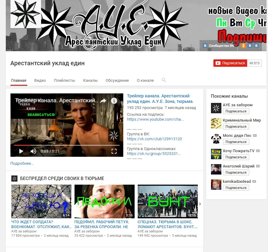 Еще из публичных выступлений Лантратовой. По ее данным, АУЕ действует в 18 регионах. Среди них — Забайкалье, Бурятия, Московская, Челябинская, Ульяновская, Тверская области, Ставрополье. Всего она с соратниками объехала 46 регионов, где находила информацию о распространении АУЕ-движения. По числу просмотров один простой онлайн-телеканал с АУЕ-тематикой, рассчитанной прежде всего на подростков, достигает 20,5 млн просмотров. В онлайн-режиме люди могут делать пожертвования.