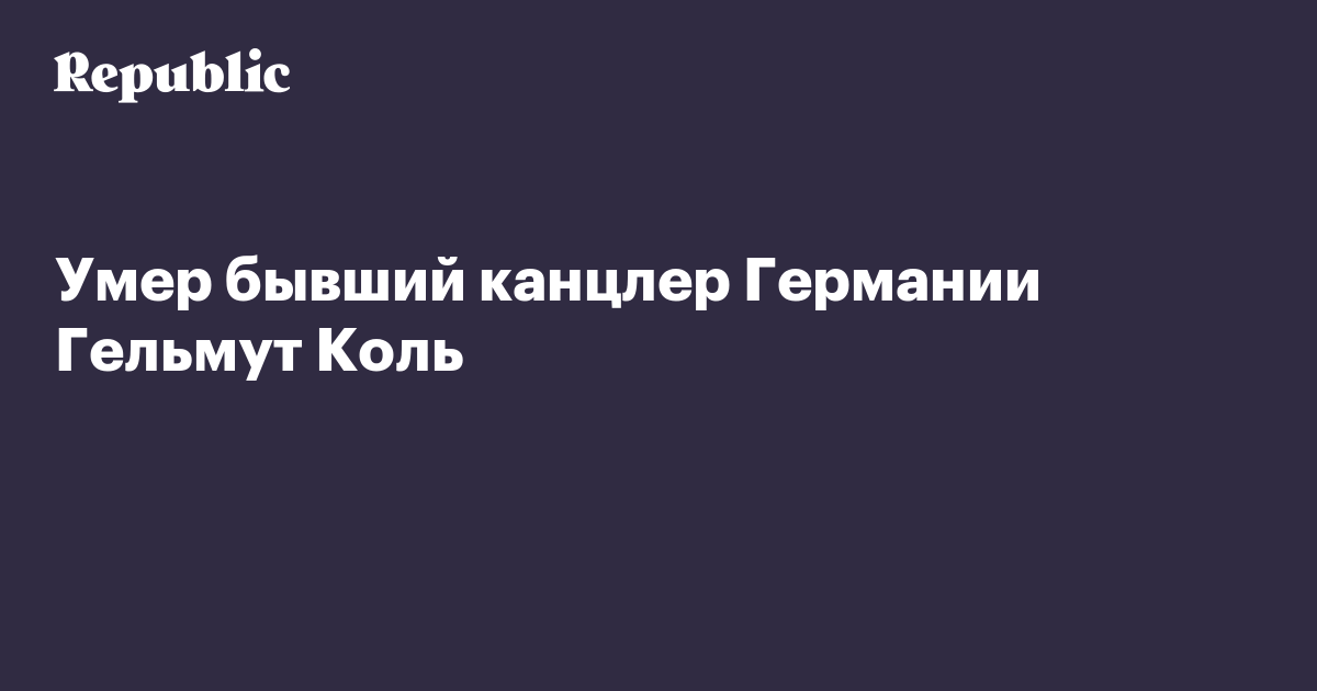 Умер бывший канцлер Германии Гельмут Коль. Об этом сообщает Bild.