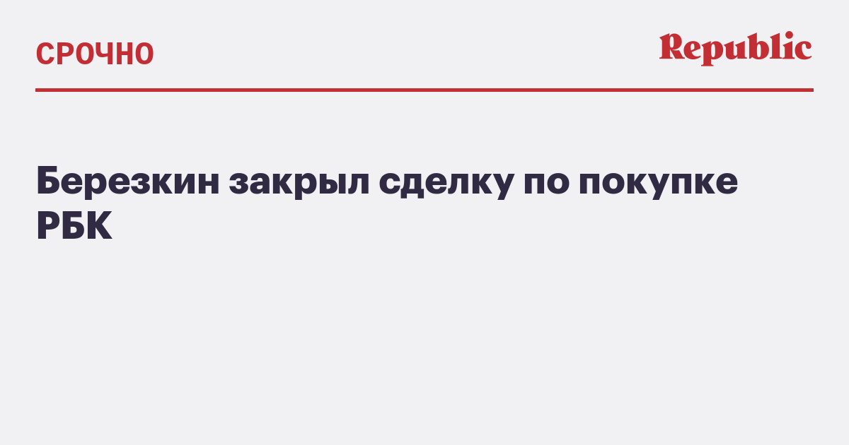 Ранее 16 июня источники «Дождя» сообщали, что группа «Онэксим» Михаила Прохорова продала медиахолдинг РБК. Сам Березкин не подтвердил телеканалу данную информацию. «Про сегодня или нет сказать не могу. Все-таки пятница-развратница. Но времени (до закрытия сделки) совсем немного осталось», – отметил владелец групп ЕСН.