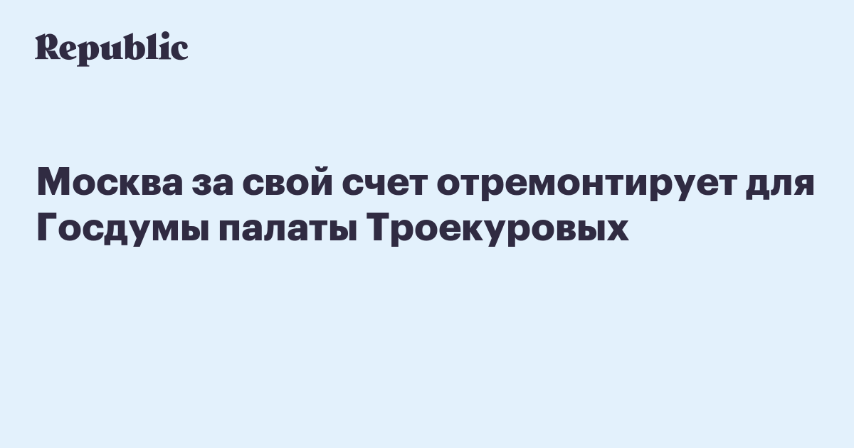 Москва за свой счет отремонтирует для Госдумы палаты Троекуровых
