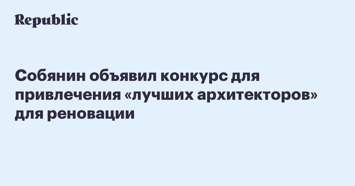 Собянин объявил конкурс для привлечения «лучших архитекторов» для реновации