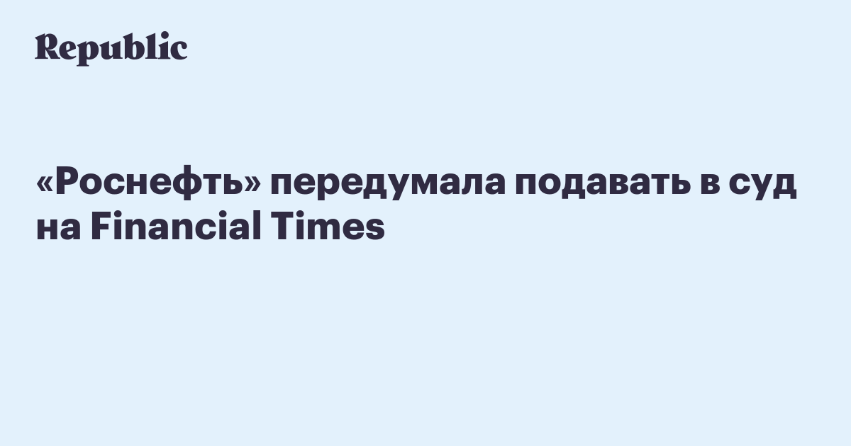 «Роснефть» и глава компании Игорь Сечин не будут подавать иск к Financial Times. Об этом RNS сообщил пресс-секретарь компании Михаил Леонтьев.