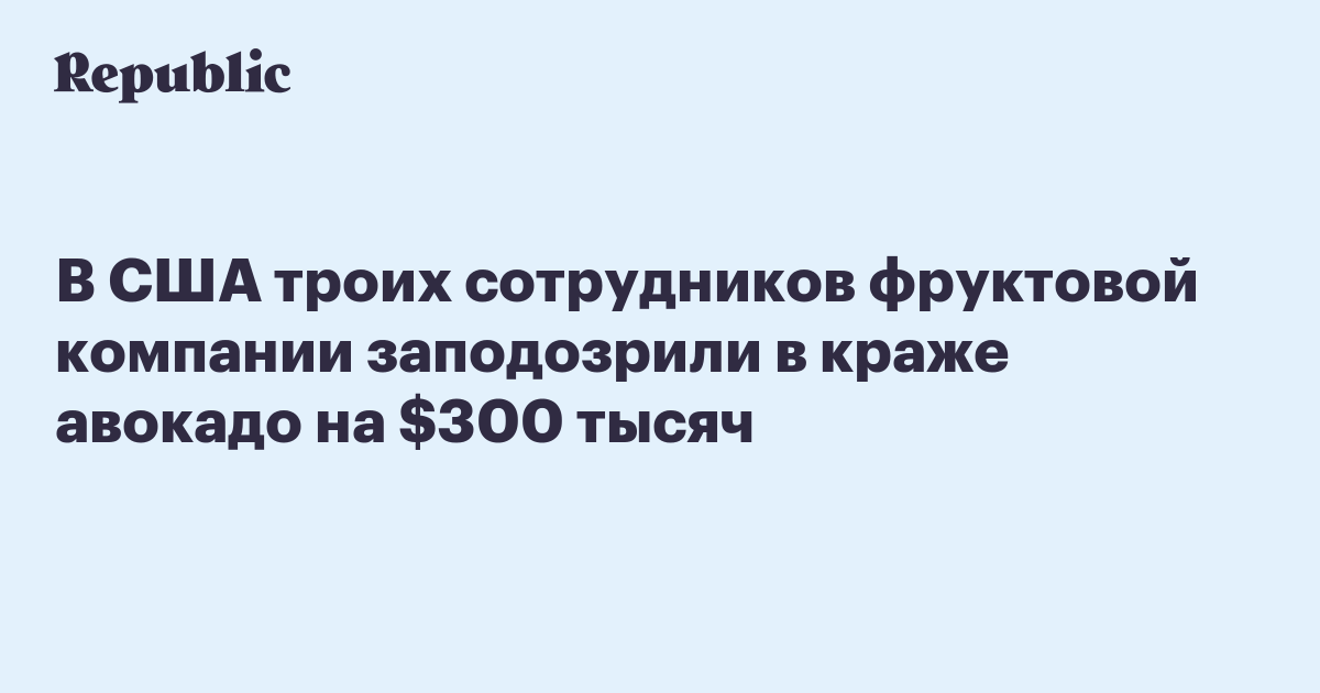 Трое сотрудников компании по производству фруктов в Калифорнии были арестованы по подозрению в краже авокадо на $300 тысяч, пишет Bloomberg.