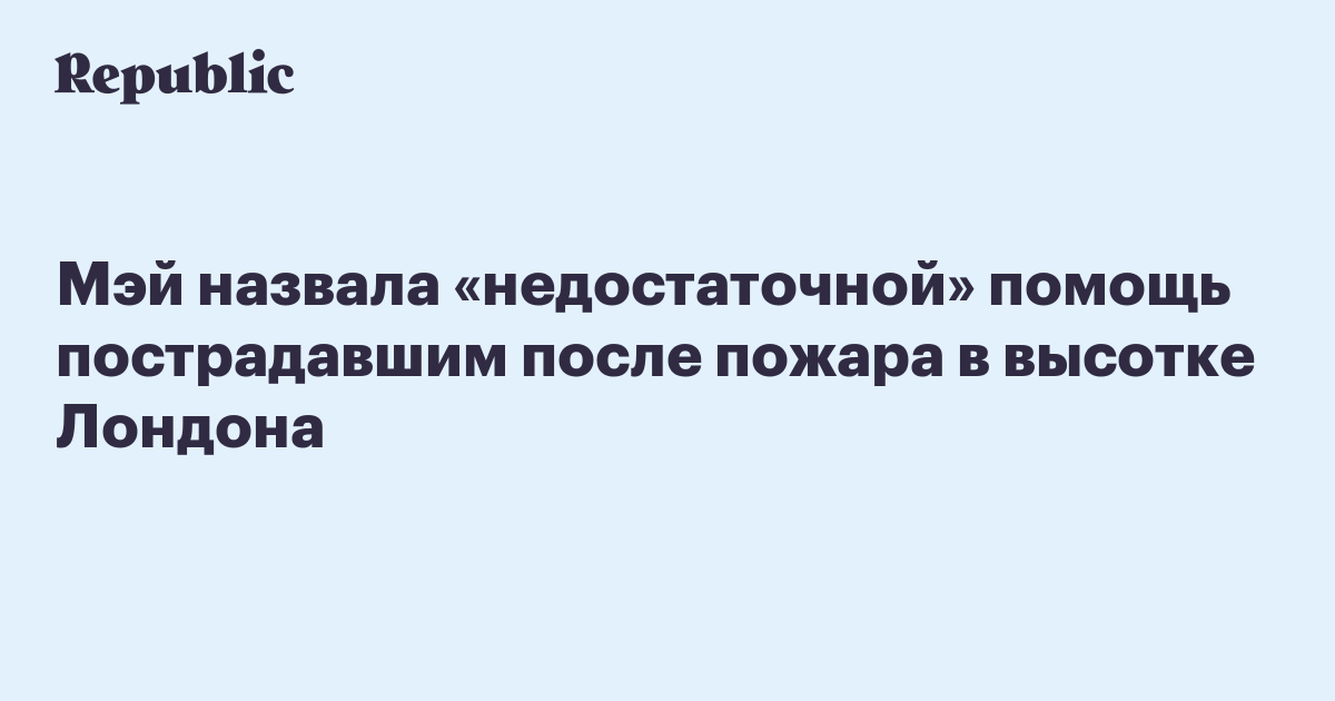 Премьер-министр Великобритании Тереза Мэй признала, что помощь пострадавшим в результате пожара в 27-этажном доме в Лондоне была «недостаточно хорошей», пишет The Guardian.