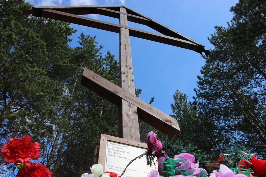 Но не только «Музей ангелов» напоминает жителям о трагедии 2016 года. Сразу после печальных событий, на берегу озера установили поклонный крест. Опять же за свой счет. Удивительно, что никакой другой помощи люди и не ждут. На вопросы — а надо ли? Говорят, что не откажутся, но и просить не будут. И это несмотря на то, что представители республиканской власти сами несколько раз заявляли, что к годовщине трагедии памятный знак на берегу озера установят. Новый руководитель региона Артур Парфенчиков лично обещал, что к 18 июня 2017 на Сямозере будет стоять мемориал. Правда за несколько дней до памятной даты стало известно, что знака все же не будет. Якобы появилась необходимость обсудить будущий знак с родственниками детей. Готовы ли сами родители к такому обсуждению, неизвестно.