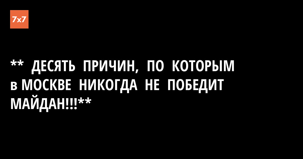 ** ДЕСЯТЬ ПРИЧИН, ПО КОТОРЫМ в МОСКВЕ НИКОГДА НЕ ПОБЕДИТ МАЙДАН!!!**