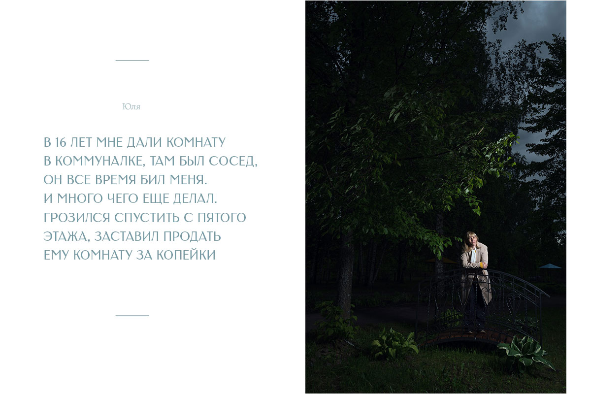 Максим Мармур для «ТД» «Я родилась в Петербурге, отец и мать пили. Сначала он сел в тюрьму, потом и она. Пьянки, убийства, все такое. Меня отдали в детдом. Мать иногда приезжала, но она постоянно была пьяная, и я не особо хотела общаться. Еще были два старших брата, Женька и Сережа, оба пропали без вести после детдома. В 16 лет мне дали комнату в коммуналке, там был сосед, он все время бил меня. И много чего еще делал. Грозился спустить с пятого этажа, заставил продать ему комнату за копейки. Я была девчонкой еще, что я могла сделать? Пришлось идти на улицу. Три года бомжевала, потом поехала к матери сюда, в Псковскую область, в деревню Локня. Думала, вдруг она завязала. Но она не завязала. Отец к тому времени уже умер. Да и она скоро померла. Потом я снова бомжевала, и меня отправили в ночлежку. А потом сюда».