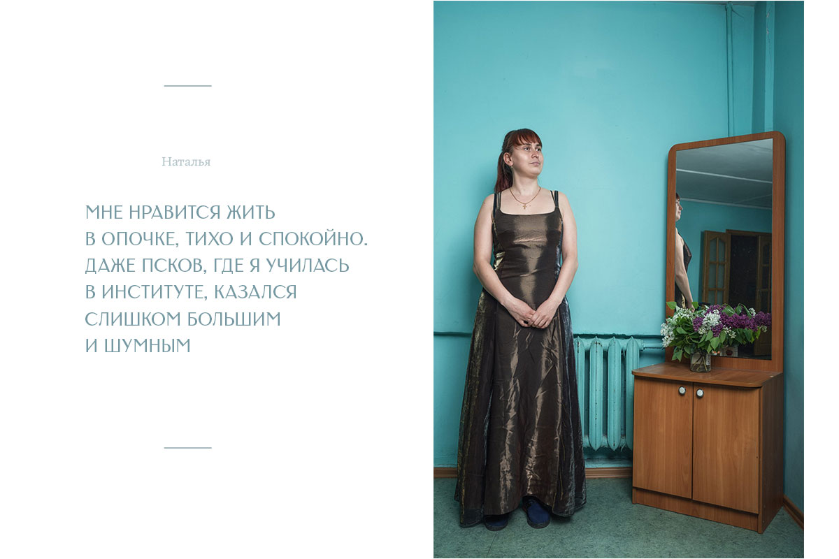 Наталья — юрист, работает в доме контрактным управляющим. Проводит закупки через тендеры на товары и услуги. Работает здесь уже 15 лет, пришла сразу после института. Ей нравится жить в Опочке: тихо и спокойно. Даже Псков, где она училась в институте, казался ей слишком большим и шумным.