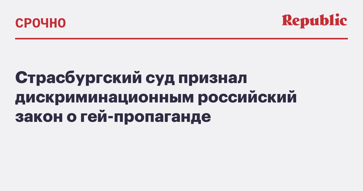 Европейский суд по правам человека (ЕСПЧ) признал дискриминационным принятый в России закон о запрете пропаганды нетрадиционных сексуальных отношений среди детей. Об этом говорится в решении ЕСПЧ от 20 июня.