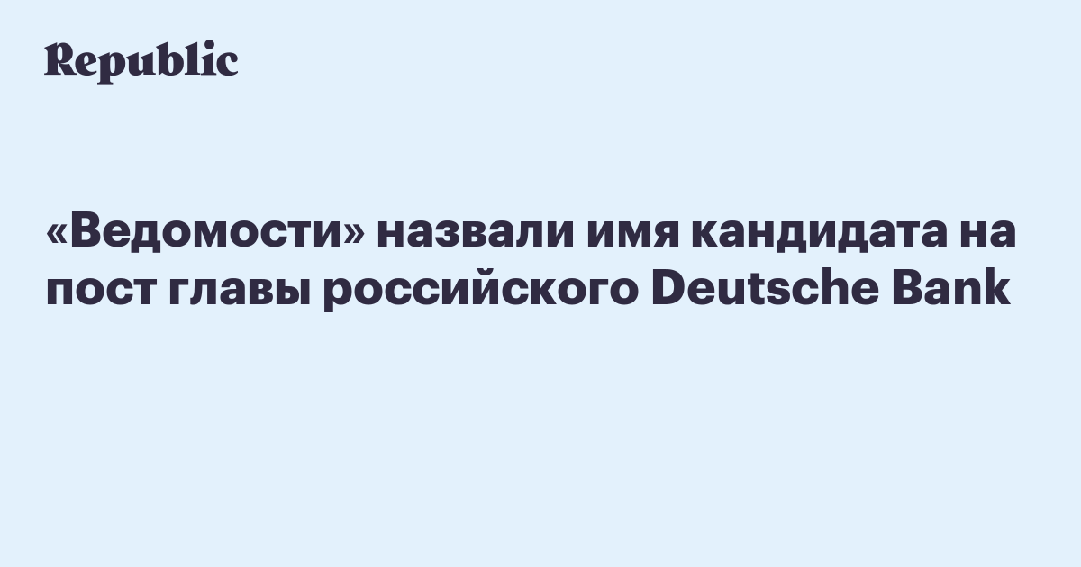 «Ведомости» назвали имя кандидата на пост главы российского Deutsche Bank